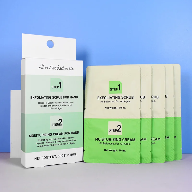 10ml Hand Exfoliating Scrub + 10ml Moisturizing Hand Cream Hydrating Deep Cleansing Nourishing Skin Walnut Aloe Vera Extract
