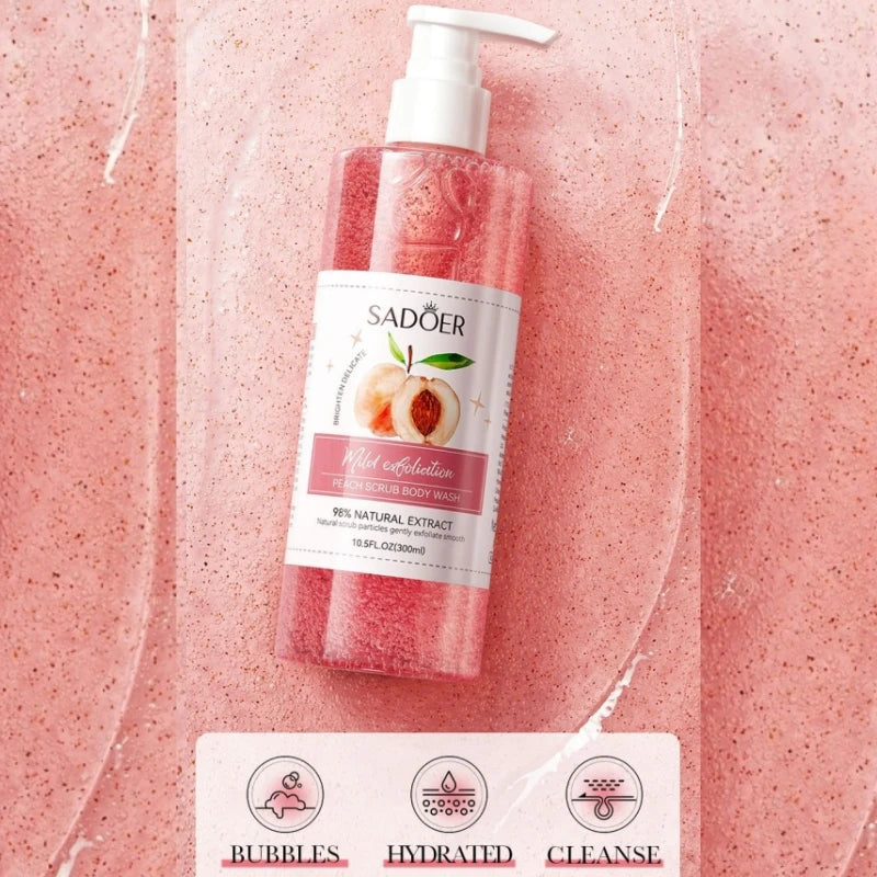300ml Peach Scrub Shower Gel, Rich in Peach Extract, Citric Acid and Other Ingredients, Fresh Peach Fragrance, Long-Lasting Fragrance, Rich Foam, Rub the Delicate Texture, Can Effectively Clean the Skin, Remove Dirt and Aband