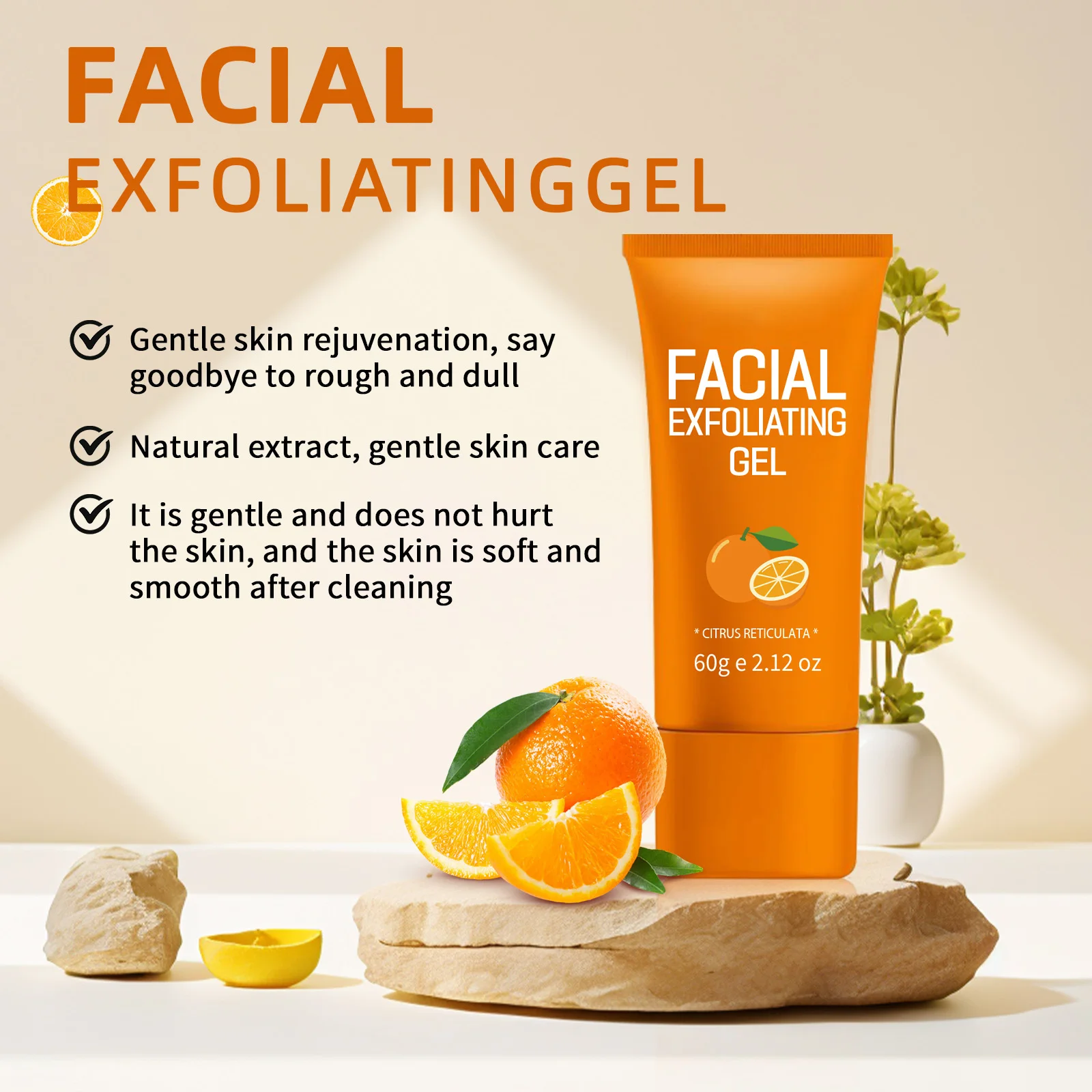 60g Citrus Facial Exfoliating Gel Gentle Peel for Glowing Skin - Removes Dead Cells Deep Cleansing Pore for Skin Care Face Scrub