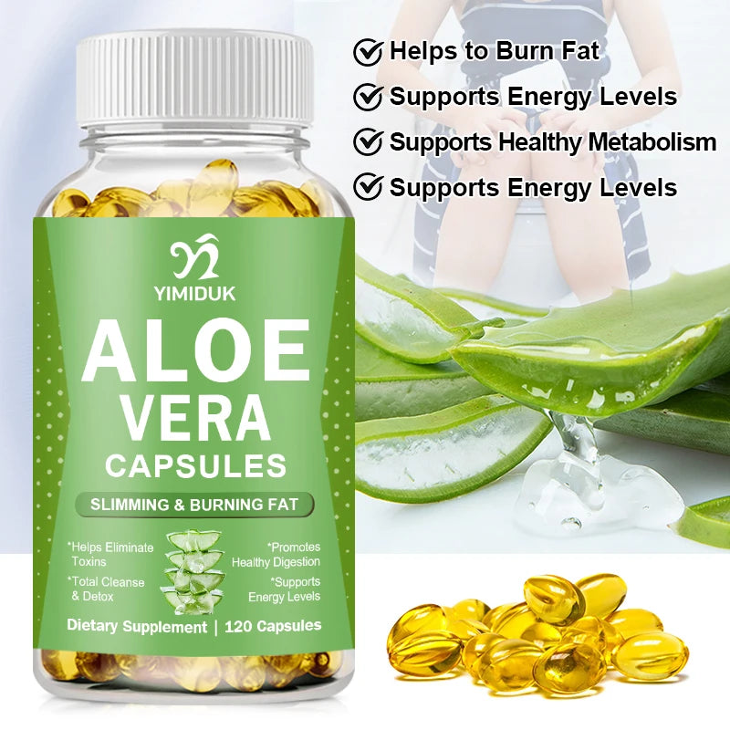 Yimiduk Aloe Vera Capsules are derived from pure herbal aloe vera extract to naturally promote digestive health, weight management, and metabolic support. The advanced formula helps stimulate intestinal peristalsis, supports a balanced gut flora, and acts as a gentle laxative. It aids in reducing abdominal fat and supports long-term digestive wellness. Each serving provides a highly concentrated 200:1 extract equivalent to 20,000 mg of pure aloe vera gel, delivering powerful cleansing and nourishing effects. Ideal for those seeking natural digestive regulation, improved fat metabolism, and immune system enhancement.
