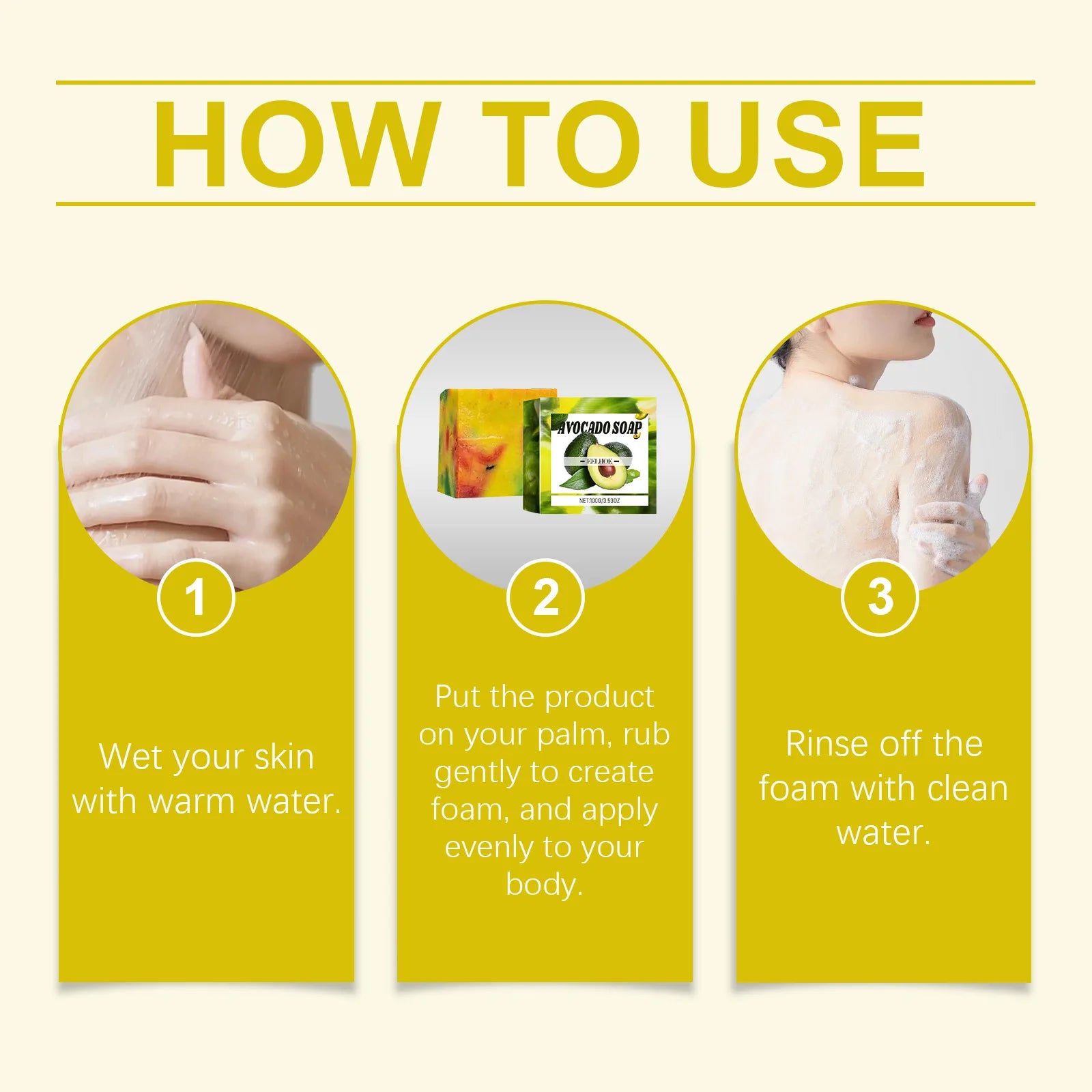 2. Put the product on your palm, rub gently to create foam, and apply evenly to your body.