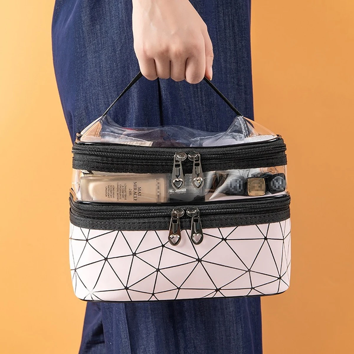 Doublelayer Makeup Bag,Waterproof PVC Travel Pouch Portable Washbag