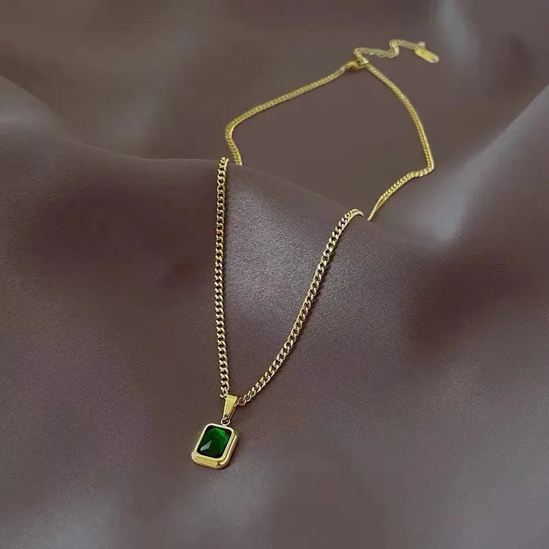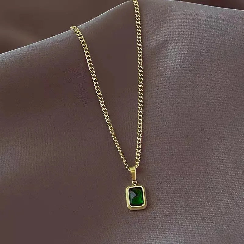 Fashion Retro Square Green Zircon Pendant Necklace For Women Charm Necklace Girls Wedding Engagement Jewelry Gift