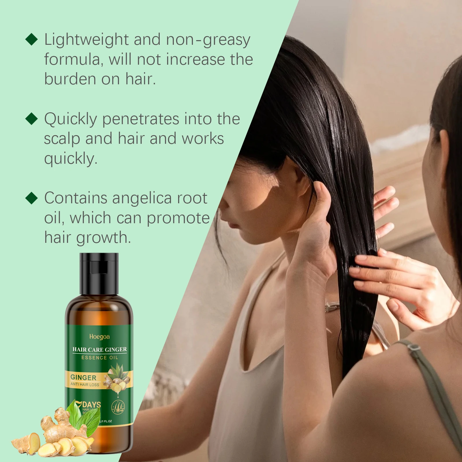 3.This shampoo is rich in ginger plant essence, nourishing and moisturizing hair, strengthening hair roots, at the same time, keeping scalp pores clean, helping to remove dandruff, making hair healthy.