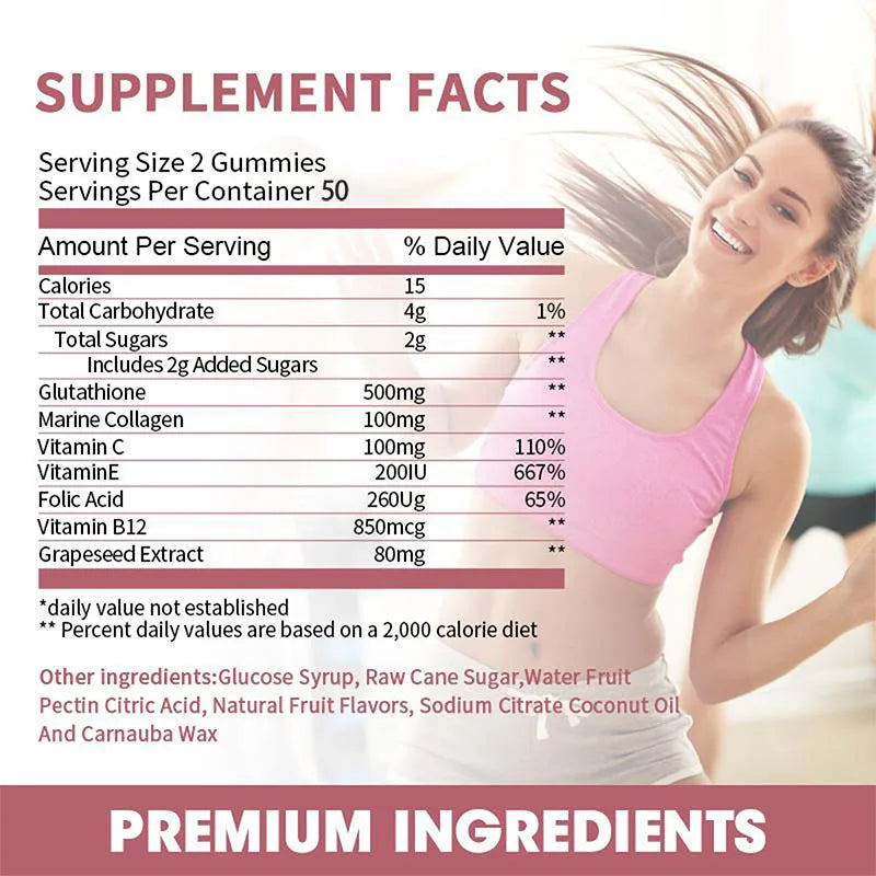 Other Active Ingredients: L-Glutathione (500mg), Hyaluronic Acid, Vitamins B6/B12, Zinc