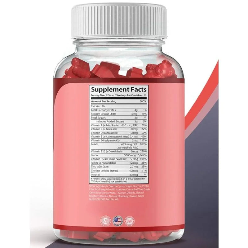 Hair Vitamin Gummies Supplement - Biotin, Folic Acid, Vitamin C and E | Supports Hair, Skin & Nails | Non-GMO | 60 Gummies