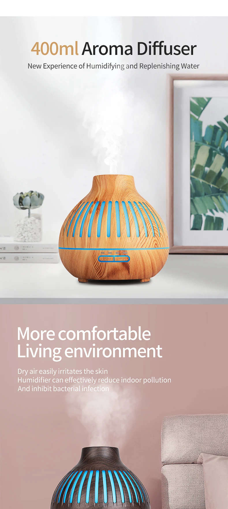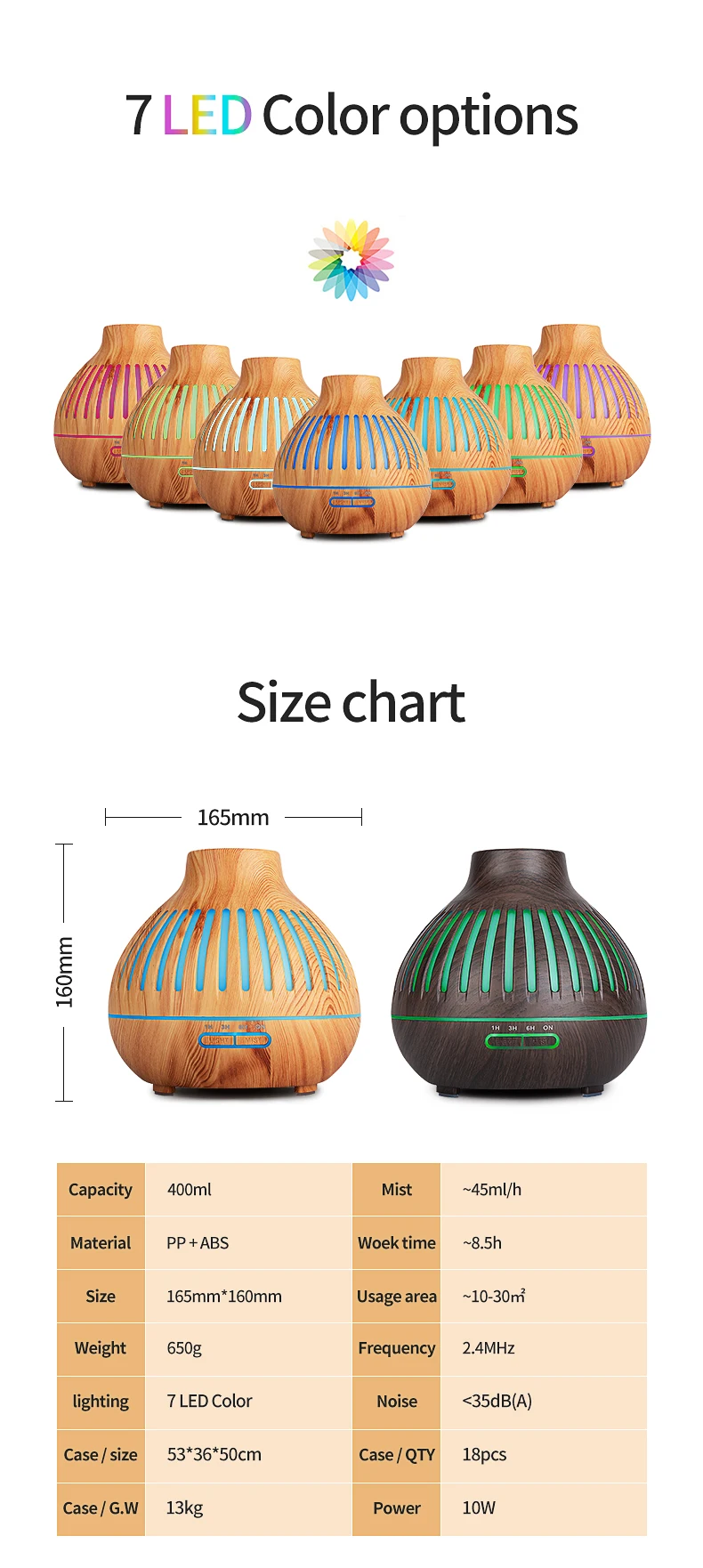High Quality Aroma Diffuser Humidifier Cool Mist 7-Color LED Night Light Air Humidifier Quiet Air Freshener for Home Office
