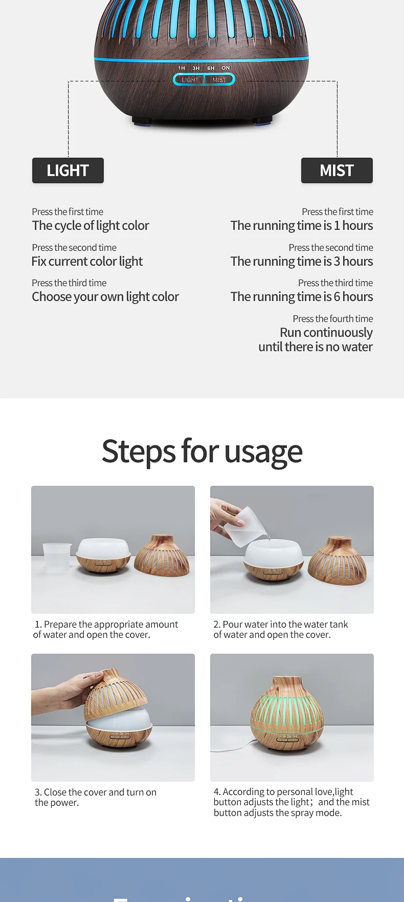 1. Can be also used as a aroma diffuser. You can simply drop a few drops of your favorite essential oil into the water.