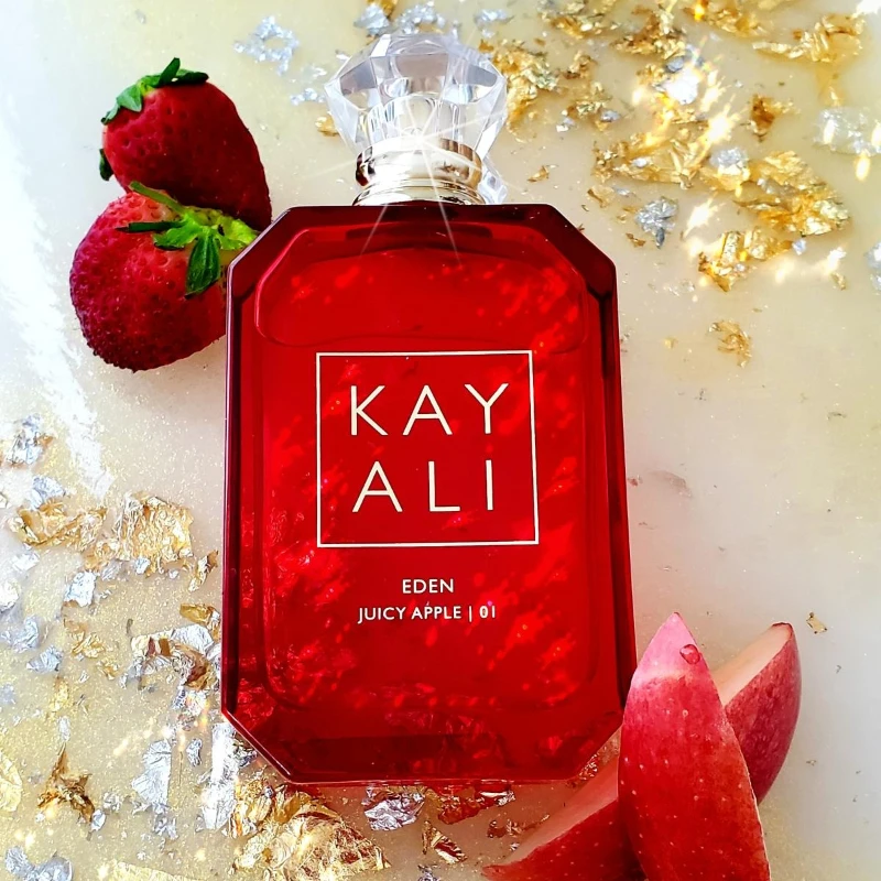 A sensual oriental floral with red apple and rich rose petals, melting into jasmine and grounded in amber and patchouli for seductive depth.