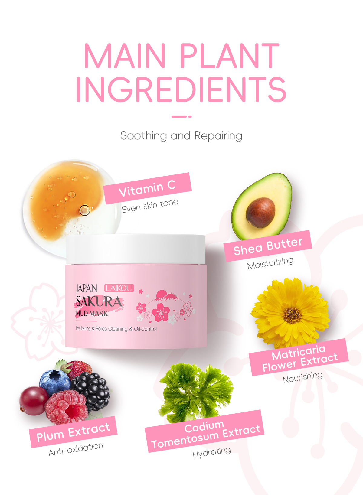 LAIKOU Sakura Mud Mask 25g Deep Cleansing Brightening Oil Control Face Mask Boost Radiance