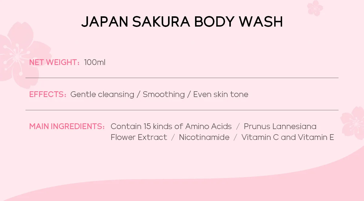 LAIKOU Sakura Shower Gel Long Moisturizing Smooth Long Lasting Fragrance Gentle Foam Body Cleansing Bath Product 100ml