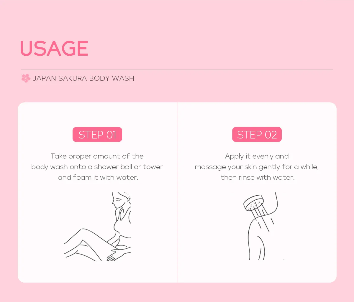 Take proper amount of the body wash onto a shower ball or tower and foam it with water. Apply it evenly and massage your skin gently for a while, then rinse with water