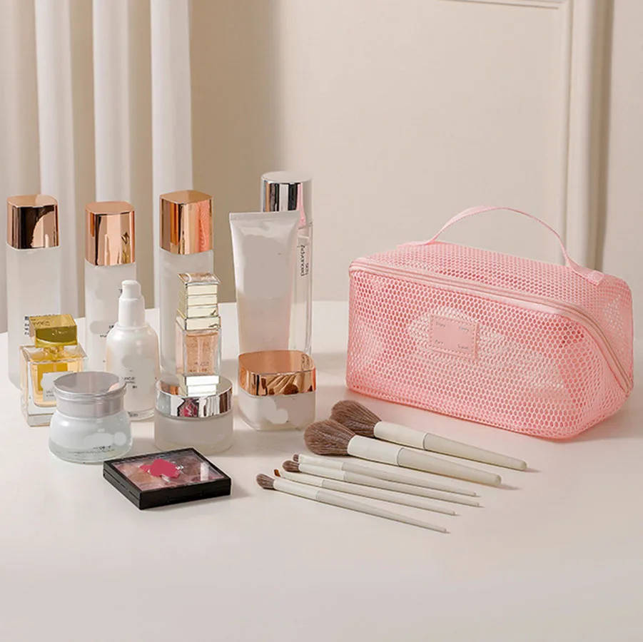 Large Capacity Mesh Handheld Makeup Bag Zipper Multi-layer Transparent Mesh Cosmetic Bag Organizer Case Square