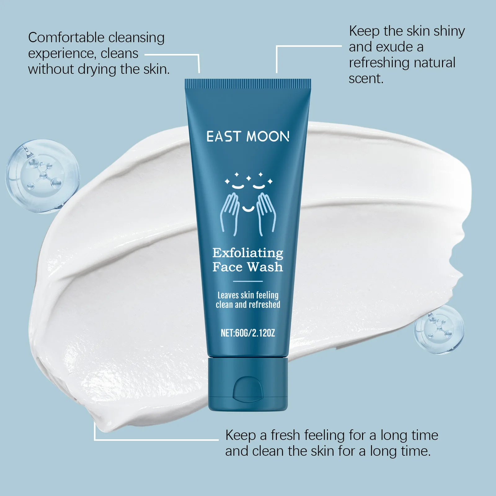 5. Comfortable cleansing experience, cleans without drying the skin.