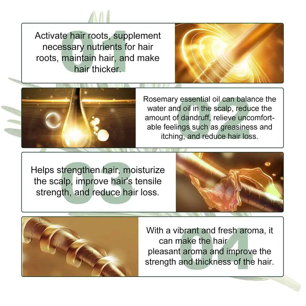 •Using high-concentration rosemary extract, it can deeply nourish hair roots and enhance the vit ality of hair follicles. Rosemary promotes blood circulation and helps the scalp absorb nutrients better, thereby promoting healthy hair . Especially suitable for people who suffer from hair loss or need to strengthen the health of their hair roots.