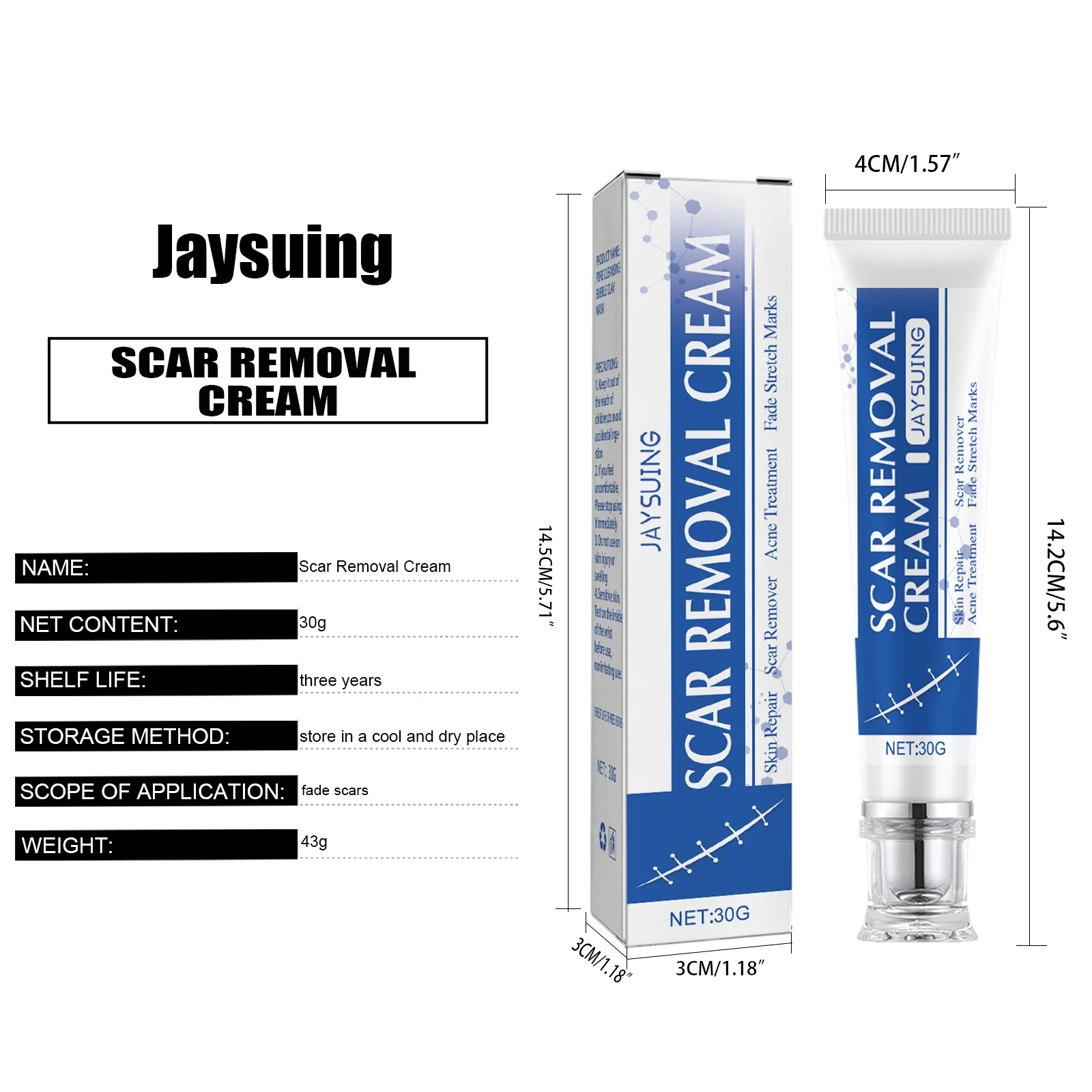 JAYSUING Scar Treatment Skin Care Cream Smooth Surgery Hyperplasia Scars Removal Stretch Marks Burns Repair Body Damaged Skin Gel Serum 30g/box