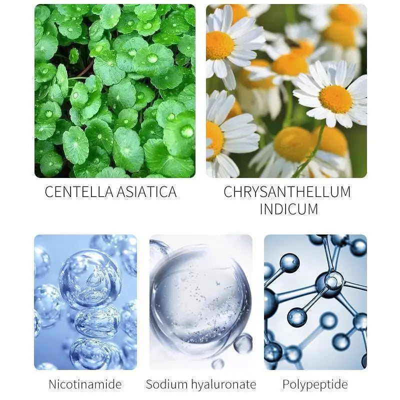 Ingredient: Water, propylene glycol, ethylhexyl palmitate, cetearyl alcohol,sodium hyaluronate, glycerin, chlorphenesin, methyl paraben, asiaticoside, asiatic acid, allantoin, card Perme, triethanolamine, xanthan gum,