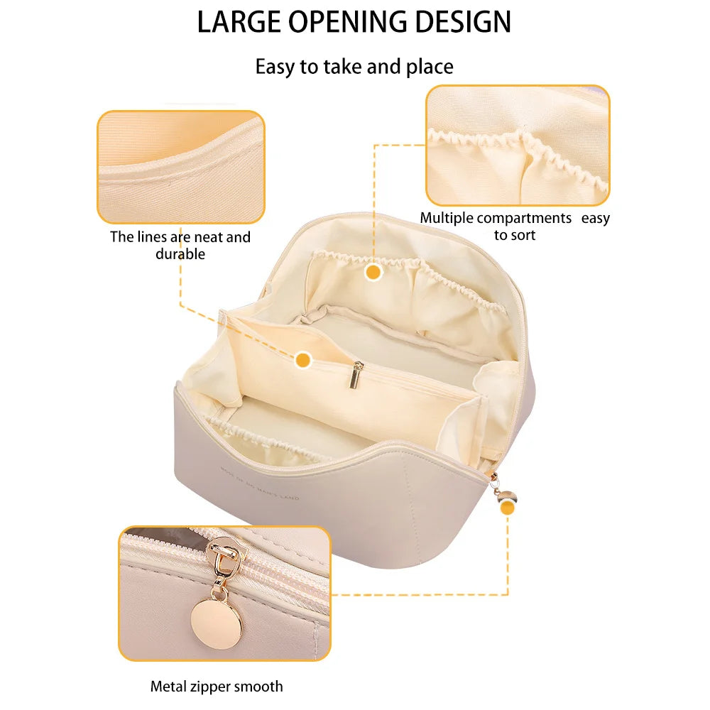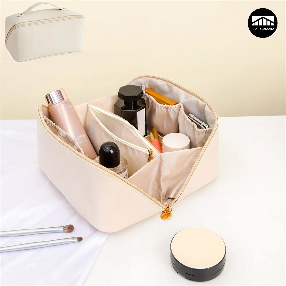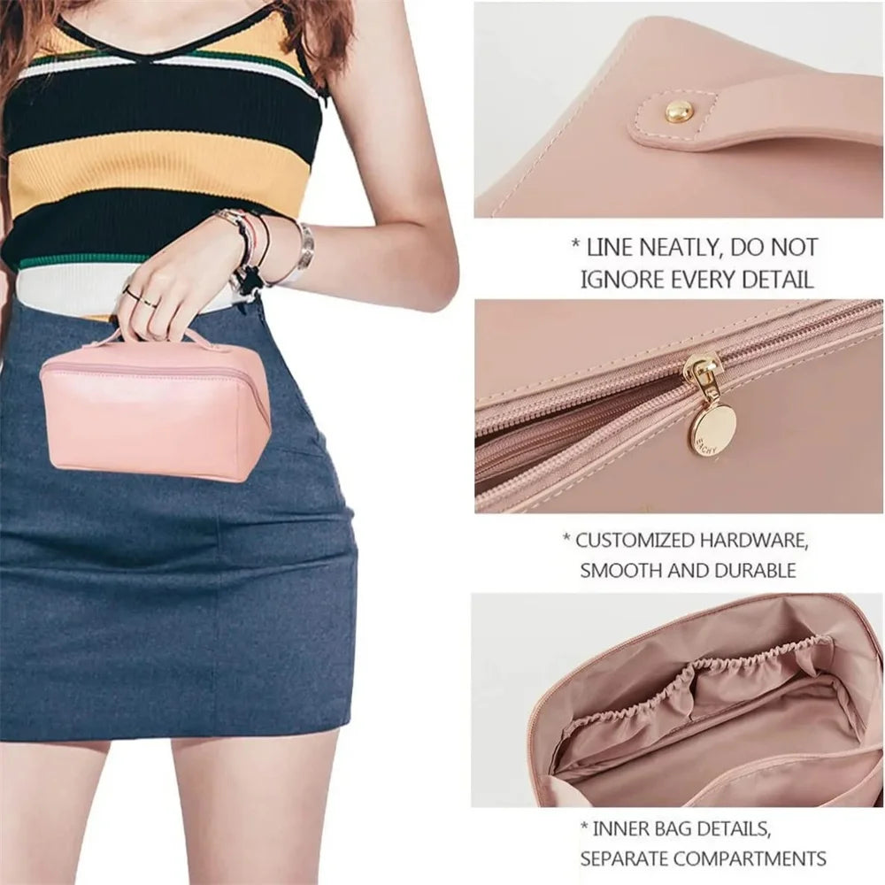 Cosmetic Travel Bag with PU leather fabric easy to clean, a special water-resistant surface to prevent internal products from getting wet.