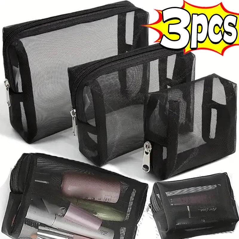 Women Mesh Cosmetic Bag Travel Storage Makeup Bag Organizer Female Make Up Pouch Portable Small Large Toiletry Beauty Case